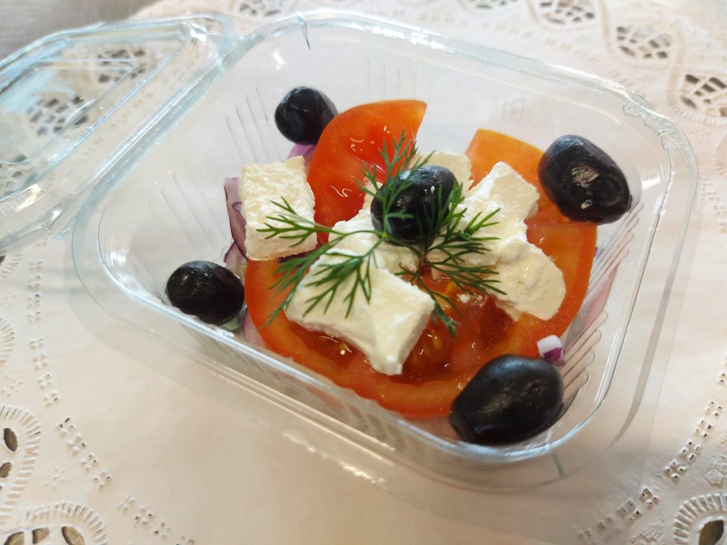 S0 – SALATĂ DE ROȘII CU TELEMEA ȘI MĂSLINE – 100 gr.