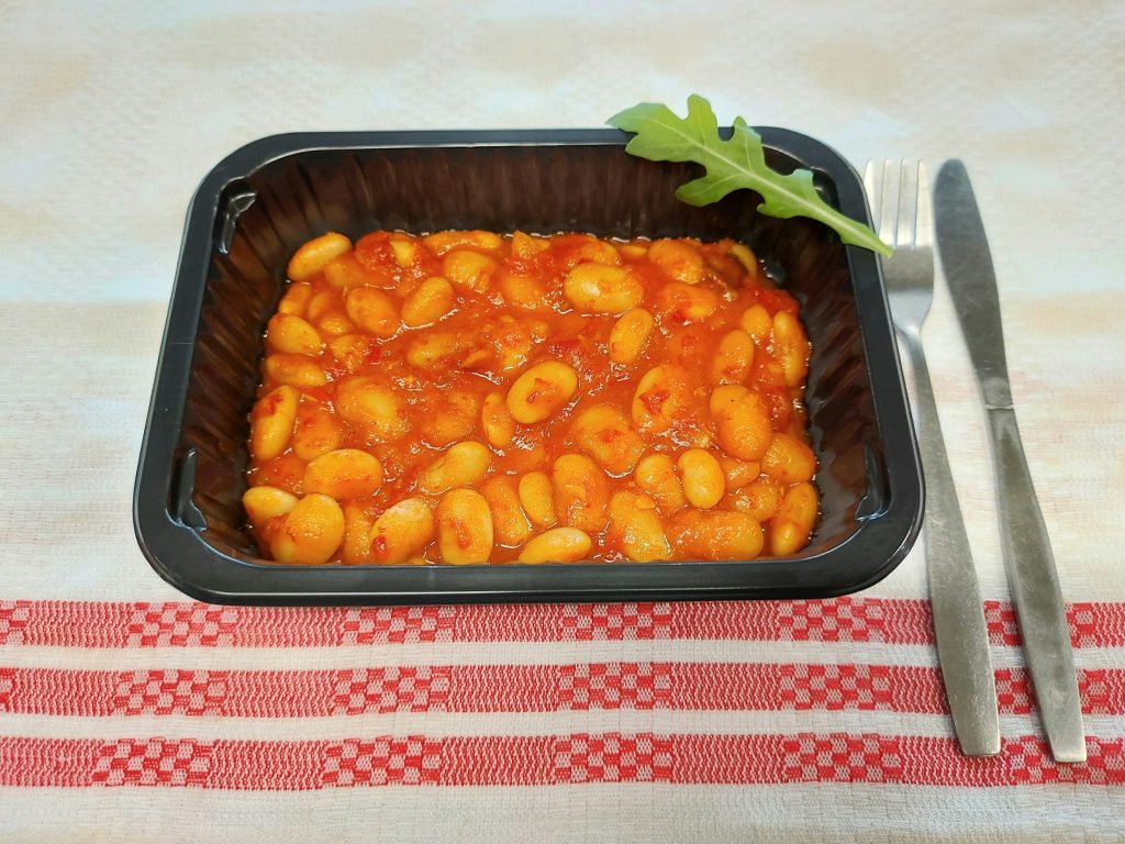 V1 – ZACUSCĂ CU FASOLE BOABE (fasole boabe, ardei, ceapă, roșii) 350 gr.