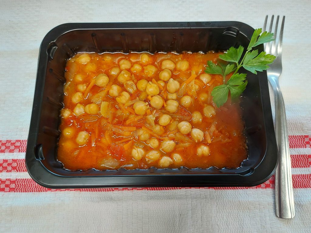 V1 – TOCĂNIȚĂ DE NĂUT CU OREZ ALB (năut, orez, ceapa, ardei, roșii, muștar, chilli, bulion, chimen, pătrunjel, coriandru) – 350 gr.