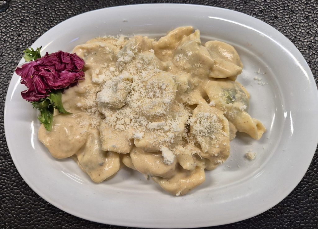 V1 – TORTELLINI QUATRO FORMAGGI (tortellini, parmesan, mozzarella, emethaller, gorgonzola, smantana, nucsoara) 350 gr.