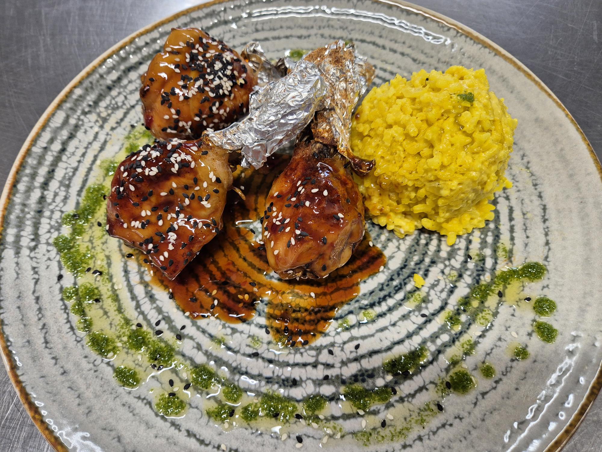 F2 – „LOLLY-POP’S” DIN COPĂNELE DE PUI CU RISSOTTO (copanele pui, orez, unt, parmezan, vin) – 350 gr.
