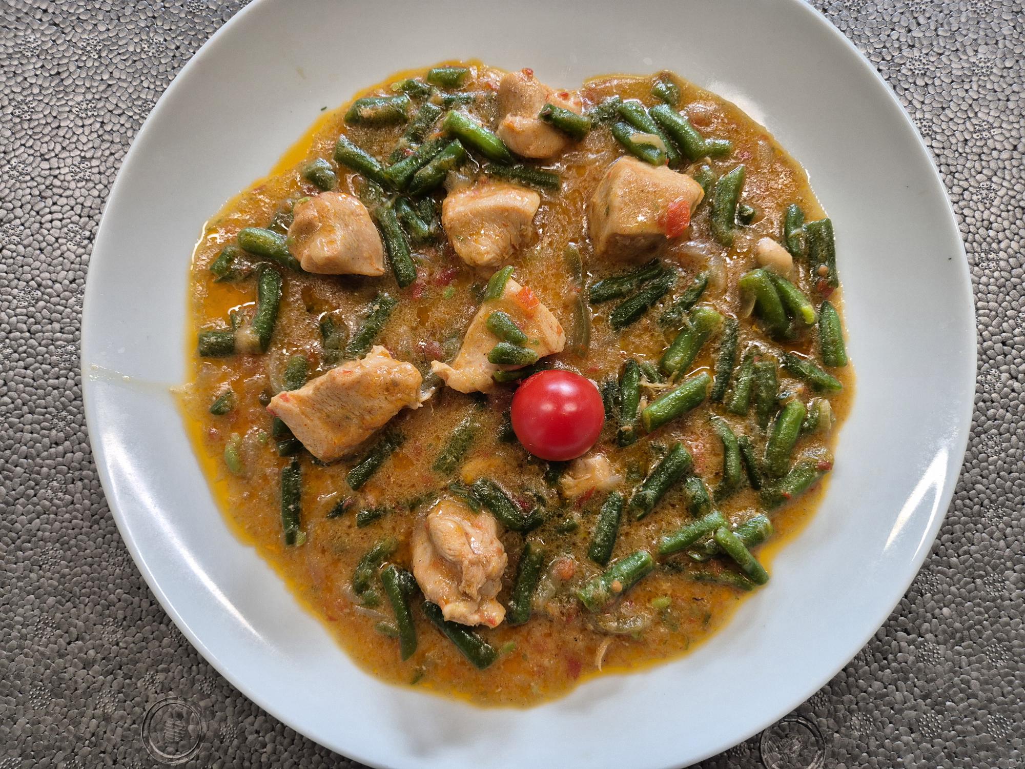 F2 – TOCANITA CU PIEPT DE PUI SI FASOLE VERDE (piept de pui, fasole verde, ceapa, ardei, boia, rosii) 350 gr.