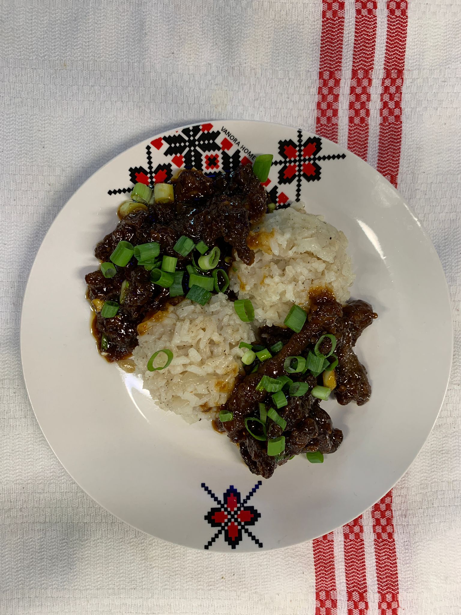 F3 – VITĂ MARINATĂ ÎN STIL MONGOLEZ CU OREZ ALB (carne de vita, usturoi, ghimbir, sos soya, ceapa verde, orez alb) – 350 gr.