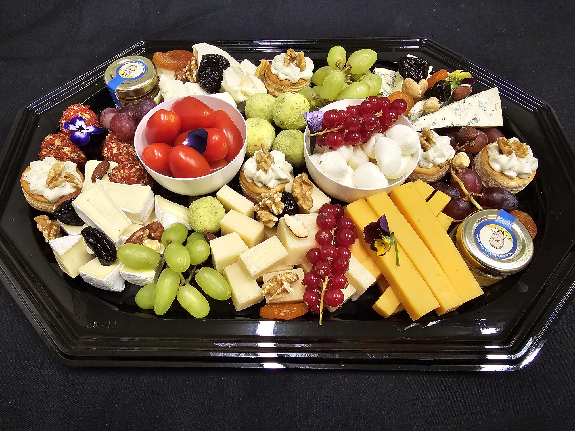 M48 – PLATOU NOBIL – 1,6 KG. (Platou NOBIL – 1600 g: Camembert, Brie, Gorgonzola, Parmezan, Mozzarella, “Rafaello” din branza de burduf, mousse de Gorgonzola cu nuci, rosii cherry, miere, struguri, selectie de nuci si fructi deshidratate)