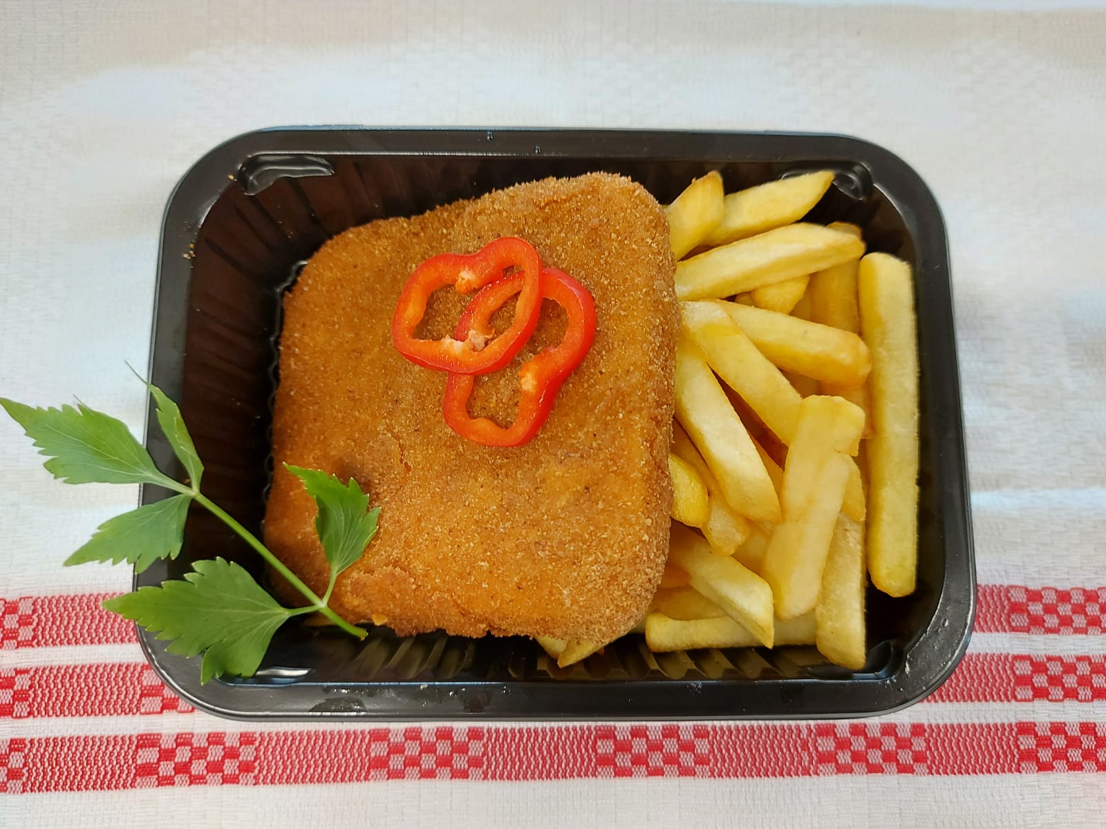 V1 – CAȘCAVAL PANE CU CARTOFI PRĂJIȚI (cașcaval, făină, ou, pesmet, cartofi) – 350 gr.